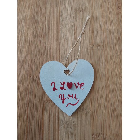 Cœur blanc, aquarelle, I love you rouge, fait main