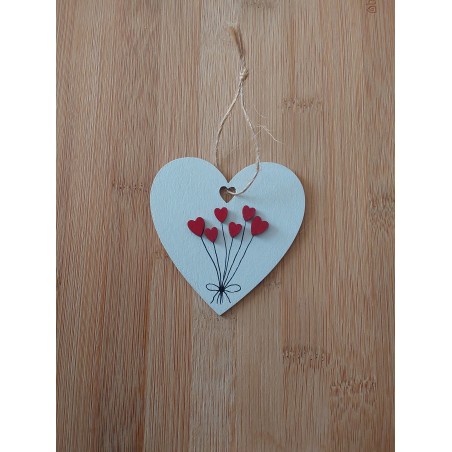 Cœur blanc en bois, 6 ballons cœurs rouges en bois, fait main